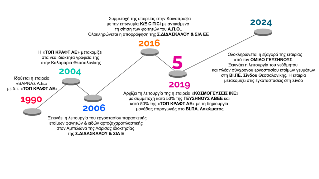 Η “ΤΟΠ ΚΡΑΦΤ ΑΕ” συστάθηκε και λειτουργεί απο το 1990. Αρχικός σκοπός της σύστασης υπήρξε η εμπορία και επεξεργασία τροφίμων. Κατά την πορεία και βασιζόμενη στη σχετική έρευνα αγοράς που διενεργήσαμε, αποφασίσαμε να διευρύνουμε τον σκοπό συστάσεως της εταιρείας. Έτσι λοιπόν, καταφέραμε σήμερα να δραστηριοποιούμαστε με απόλυτη επιτυχία στον χώρο της μαζικής εστίασης.